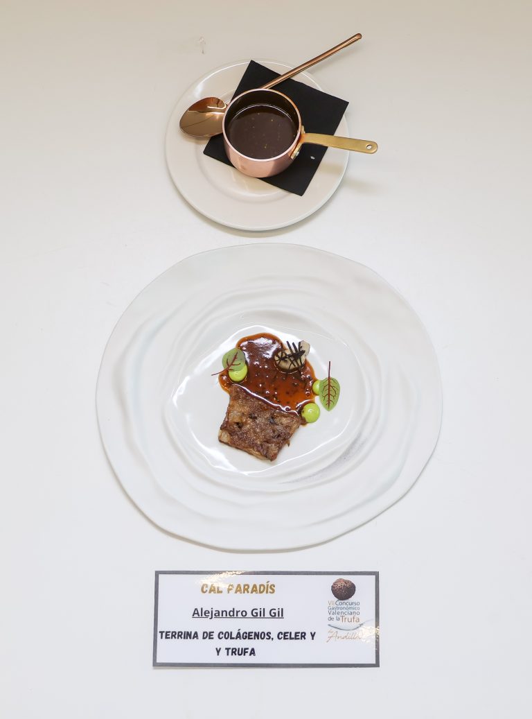 Una deliberación muy disputada en la que se ha valorado la presencia de la trufa, la originalidad y la dificultad de ejecución, entre otros criterios. El chef Alejandro Gil, del restaurante Cal Paradís de Vall d’Alba con 1*Michelín, 1*Verde y 2 Sol Repsol, ha conseguido un segundo puesto con una terrina de colágenos trufados, celeri y trufa, donde ha reivindicado el papel incipiente de la casquería en la alta cocina.