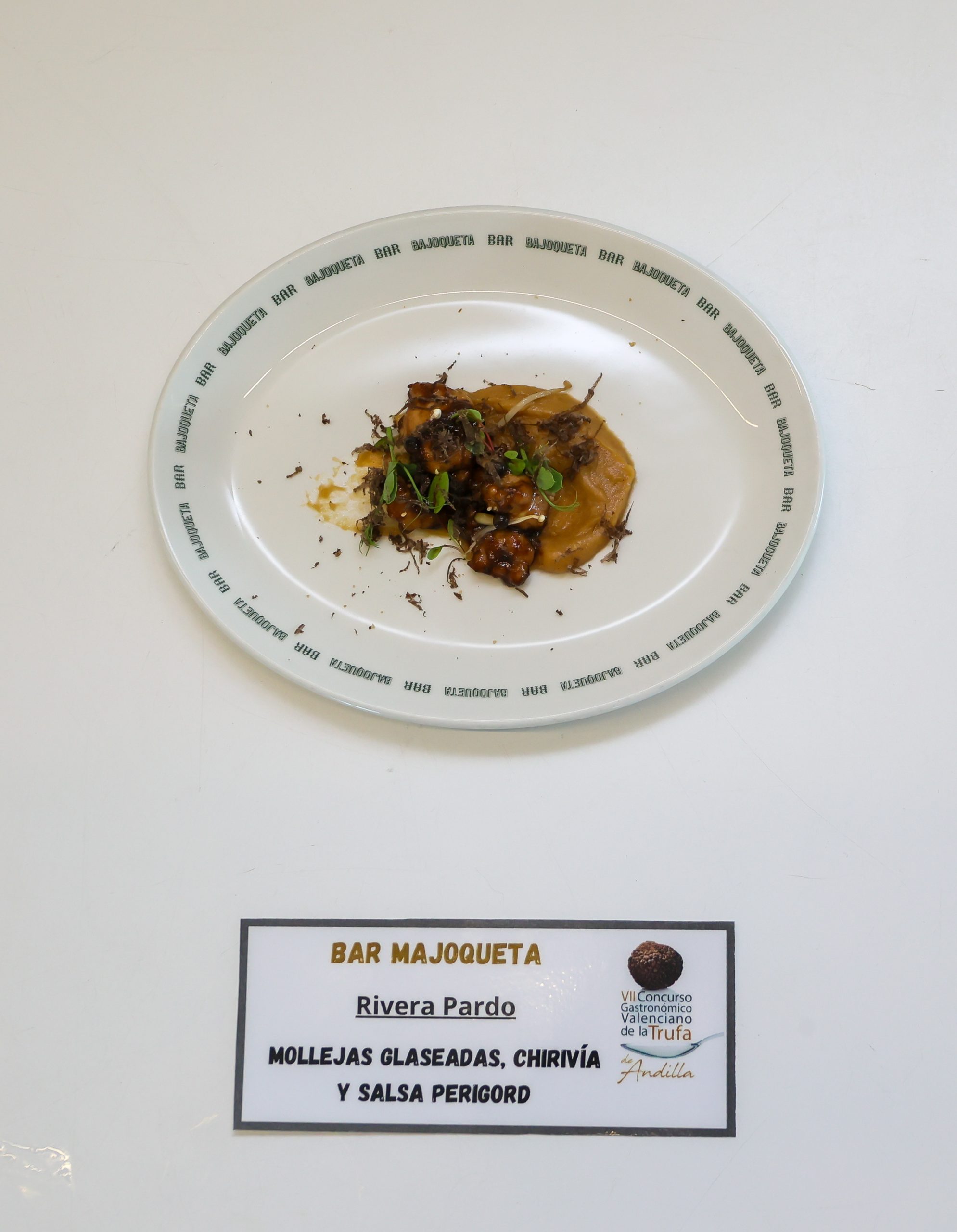 También han sido platos de gran nivel los propuestos por Martín Jiménez, de El Mosaic, (Meliana) que se ha atrevido a versionar la tradicional Olla Churra en un arroz carnaroli con bleda a la brasa y trufa, una receta que aunaba tradición y vanguardia. Jaime Rivera Pardo, de Bajoqueta Bar (Valencia) ha sorprendido con unas mollejas glaseadas, chirivía, setas y salsa estilo perigod que ha representado el paisaje del bosque de la Serranía.